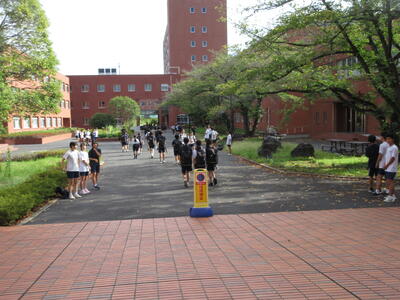 ▼正門付近からつらなる「おはようございます!!」の声。清々しい朝の始まりです。