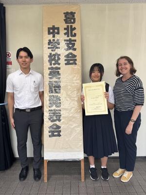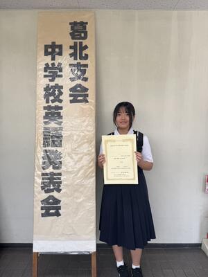 ☆ 9月11日(木)稲垣さん、見事優良賞!!~葛北支会中学校英語発表会~