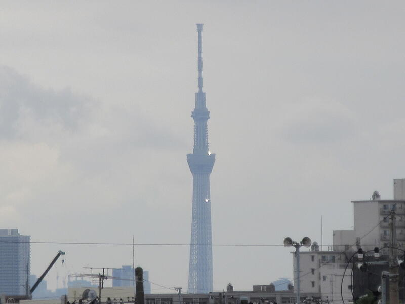 ▼A棟3階の廊下からは、多少霞んではいますが、東京スカイツリーを見ることができました。