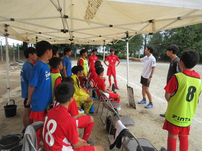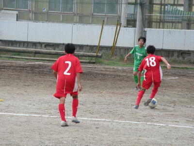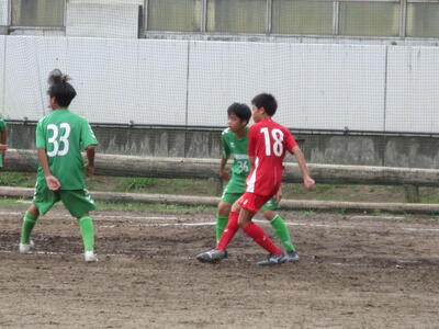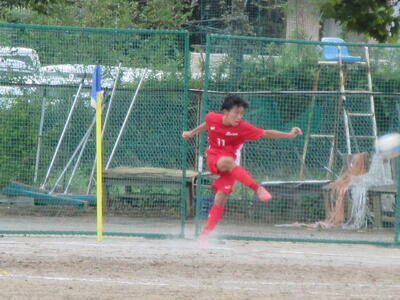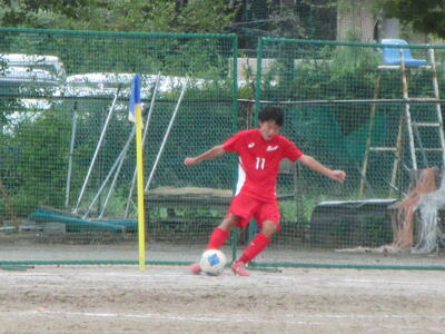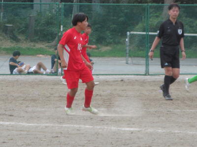 新チームとなって初めての公式戦。前半から自陣で引き気味に守る相手に、なかなか得点を奪えずに無得点のまま試合が経過します。しかし、給水タイム後、本校のコーナーキックのこぼれ球が相手ディフェンスのオウンゴールを誘い、1対0で前半を終了します。