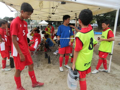 後半に入っても圧倒的に敵陣でのゲーム展開となり、何本もシュートを放つものの、僅かなところでゴールネットを揺らすことができません。しかし、ヘディングでのゴールが決まり追加点を上げると、その後、続けざまにシュートが決まり3対0とリードを広げます。そして終了のホイッスル。見事に初戦を勝利で飾りました。