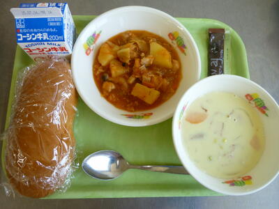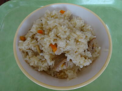 今日はいつもよりおなかが空いていて、まず最初に食べたのが焼き肉チャーハンでした。一口食べるごとに香ばしい焼き肉は、ご飯と混ざり合って何倍もおいしいチャーハンでした。次に鮮やかな緑のゴーヤーとじゃこと大豆の揚げ煮をいただきました。なんと、今年の初物です!栄養士の先生に聞いたところ、今年は群馬県から取り寄せたとのこと。ゴーヤーは沖縄のイメージがありますが、実は群馬は気候が暑くてゴーヤーの栽培に適しているとか。給食で初物をいただくのは、枝豆の次に二度目ですが、取り立てをカラッと油で揚げており、じゃこと大豆でとってもジューシーで味わい深いメニューでした。ワカメのスープは、コンソメ味のさっぱりしたスープでワカメがたっぷり入って食べ応えがありました。そして、デザートのレモンヨーグルトでやっとおなかが落ち着きました。今日も最高の給食を作っていただき、栄養士さんをはじめ、調理員の皆さん、ありがとうございました!!