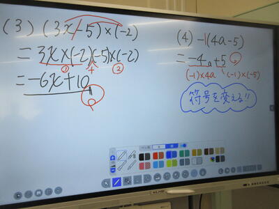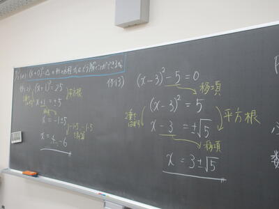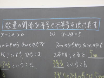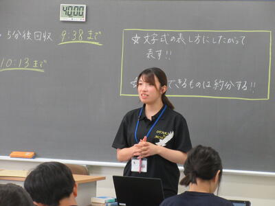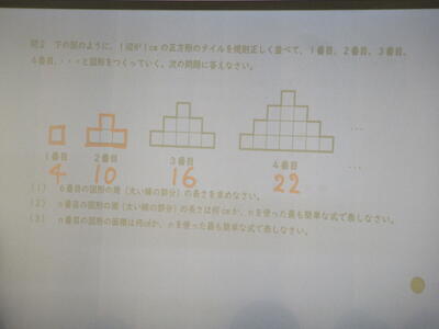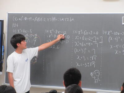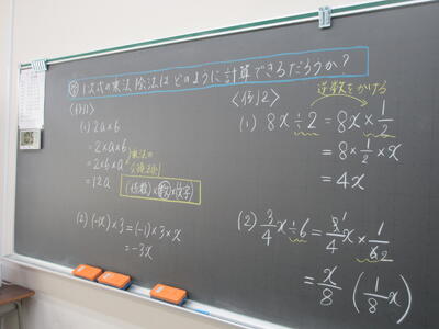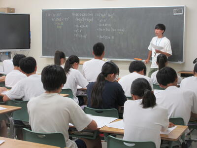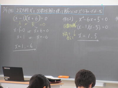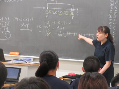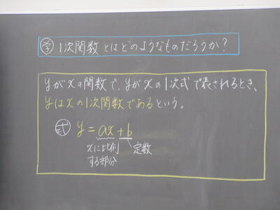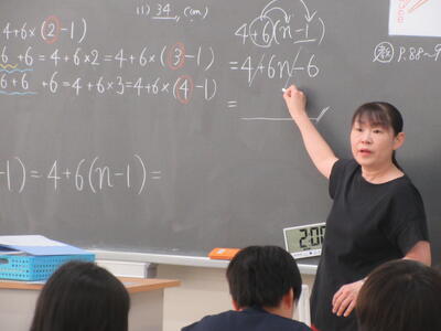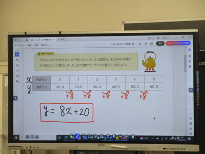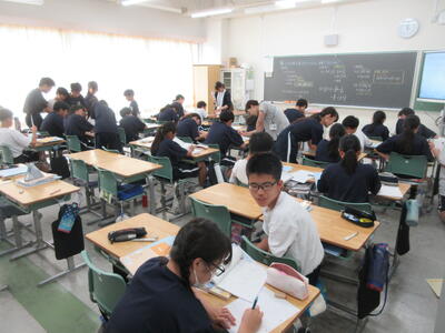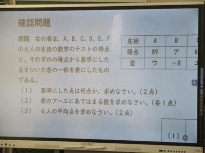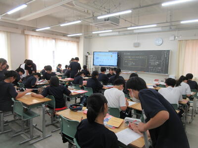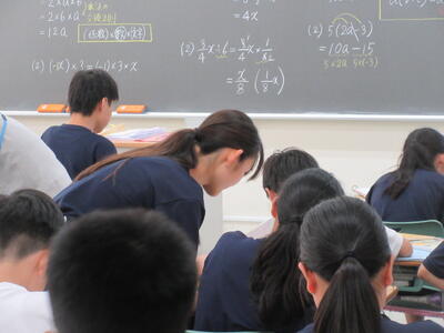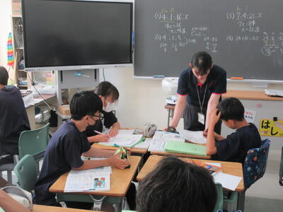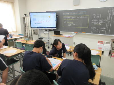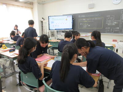 ▼1年生数学の授業。ここでも学び合う授業が行われています。
