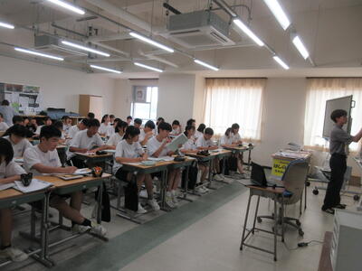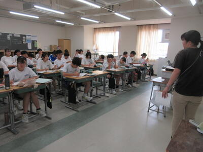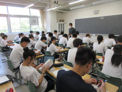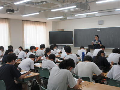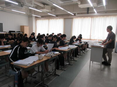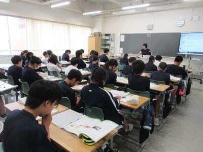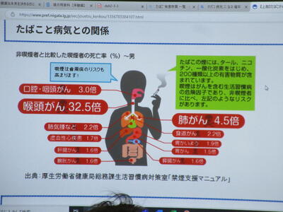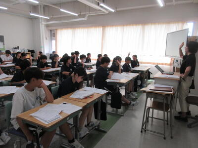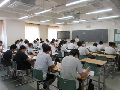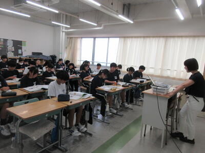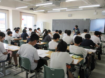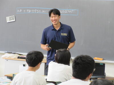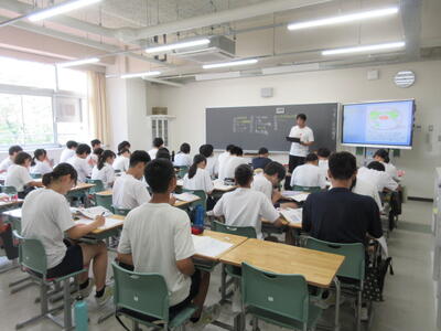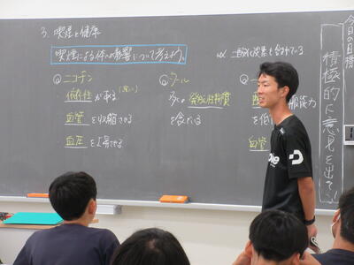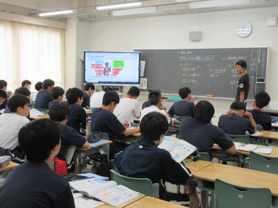 ▼2年生男子の保健体育の授業。「喫煙による体の影響について考えよう」がテーマ。自分の健康について考える習慣を持つことは、これからを生きていく上で絶対に必要です。健康ほど大切なことはありません。