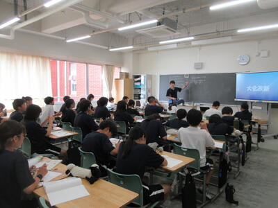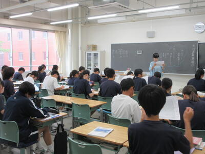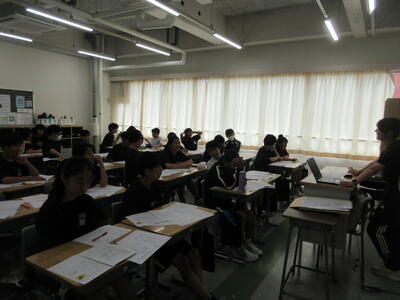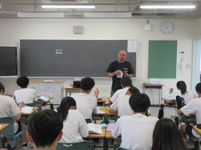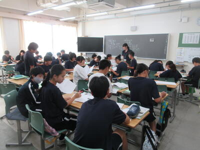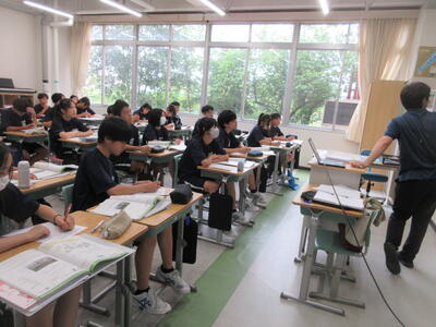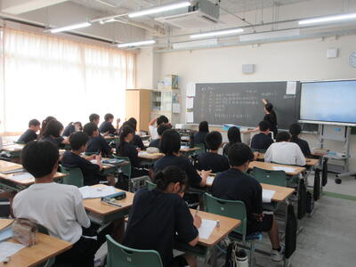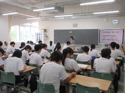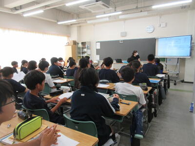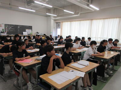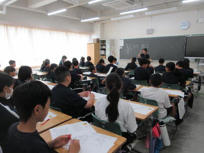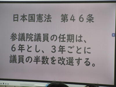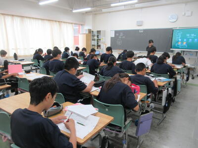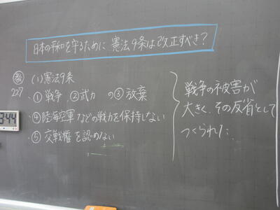▼3年生の社会科の授業。「自衛隊」「憲法9条」。難しいけれど、義務教育が終わりに差し掛かってきた3年生には、逃げることなく、しっかりと考えてもらいたいテーマでもあります。