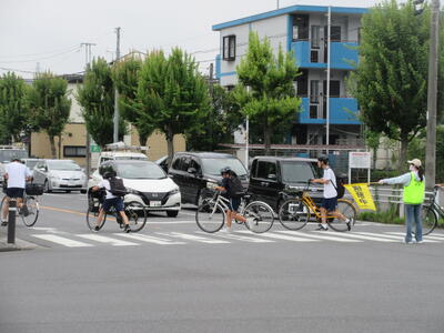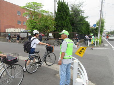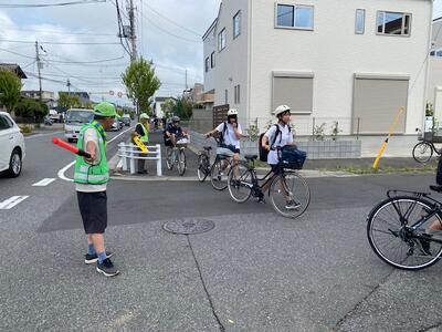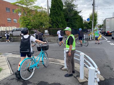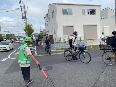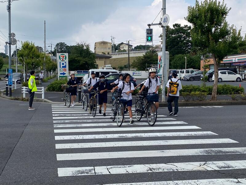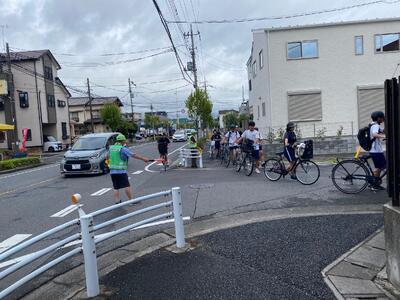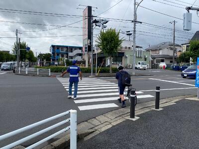 PTA会長の目黑さん、PTAバレー部キャプテンの佐藤さん、交通安全協会の梅澤さん(いつも、自転車を整備してくださる方です!)のお三方です!!お忙しい中、先日ご紹介した危険箇所の1つ、思井福祉会館交差点で生徒の安全な横断を見守ってくださいました!