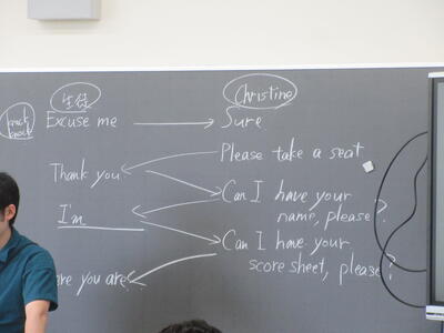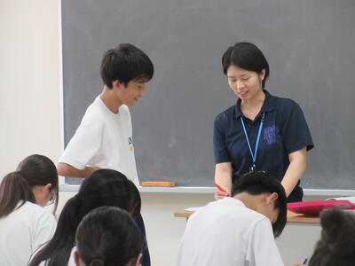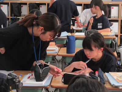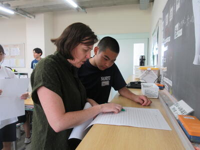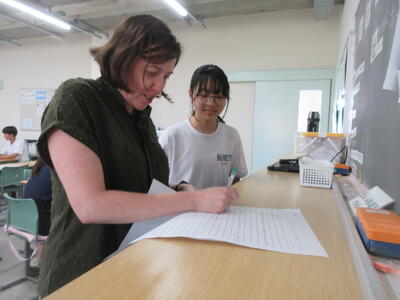 ▼クリスティン先生も子ども達の回答チェックで大忙し。