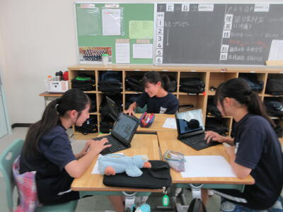 子ども達が元気に登校してきた後、外はぐんぐん気温が上がってきていますが(教室内はエアコンで快適です!)、1,3年生は暑さにも負けず、元気いっぱいに授業に取り組んでいます!