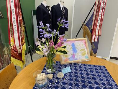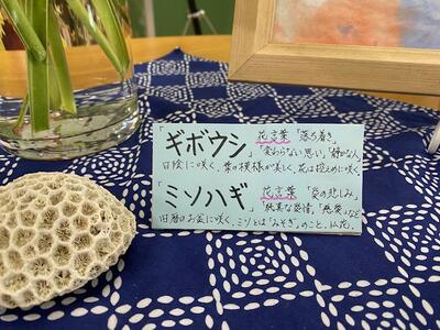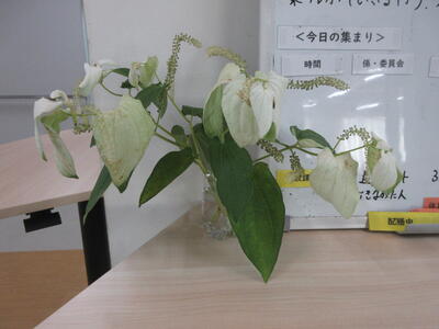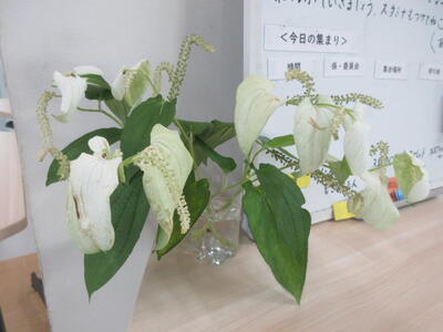 ▼渡辺春子副校長先生が飾ってくださったきれいな花。毎日、日替わりのように素敵なお花を飾ってくださっています。ありがとうございます!! 「ギボウシ」「ミソハギ」ですか。知りませんでした。花言葉を読むと自分に欠けているところだな、とつくづく感じます。