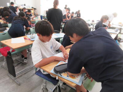 ▼子ども達の食い入るような目線が先生の手元に注がれています。