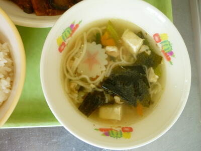 たっぷり盛られたわかめご飯は、ほどよい塩味とごまの食感でおいしくいただきました。何より戦中生まれの父がいる我が家では、ご飯は白米が全てであり、混ぜご飯はほとんど作りません。ですから、わかめご飯は待望のメニューでした。今日は和食のおかずで、ほっこり笑顔になるほのかな甘みの厚焼き卵と厚揚げとひじきの炒め煮で、ますますご飯がすすみました。厚揚げとひじきはしっかり味が染みて、もりもり食べられました。玉ねぎのみそ汁は、合わせみそのみそ汁に、玉ねぎが柔らくて食べやすかったです。今日も栄養士さんをはじめ、調理員の皆さん、おいしい給食をありがとうございました!!
