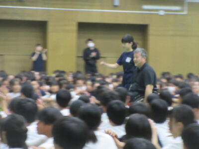 林間学園が終わり、南流中に戻ってきた2年生を迎えてくださったのは、たくさんの保護者の方々。皆さん、子ども達のために、本当にありがとうございます!!