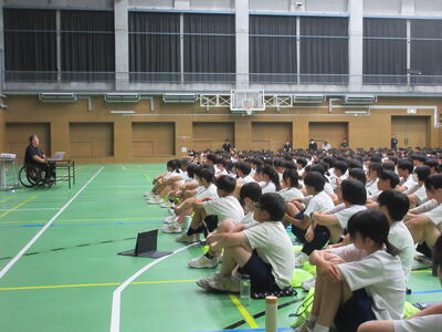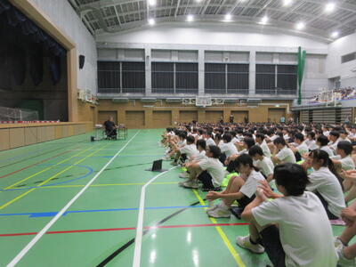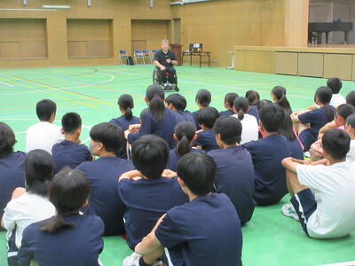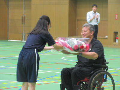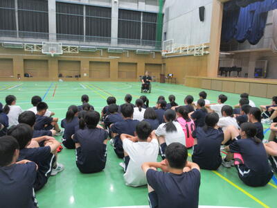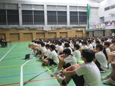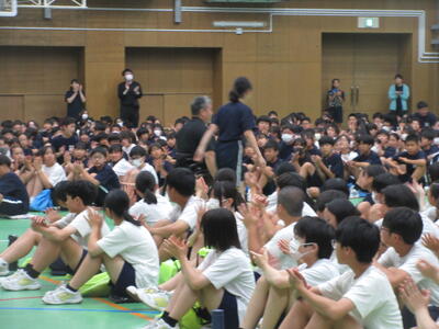 ▼本日は特別に南流山中のために、信濃町を代表して信濃町教育委員会教育長、北村康彦様もお越しになり、ご挨拶を頂戴いたしました。流山市と信濃町との関係や、信濃町を第二の故郷と思って欲しいといった、子ども達への温かいメッセージを送ってくださいました。