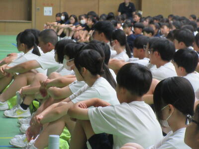 予報通り、朝からとても暑くなっている中(今日は、今季初、千葉県に熱中症警戒アラートが発令されています!)、今日も多くの生徒が体操服で登校して来ています!比較的に涼しかった5月~6月前半からの、急な30℃超え!体が慣れていない分、朝の登校だけでも疲労を感じてしまいます。夜更かしをしてしまっていたり、朝食をとっていなかったりすると、それだけで熱中症のリスクが高まってしまいます。十分な睡眠と朝食をとれるよう、ご家庭での体調管理をお願いします!