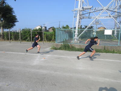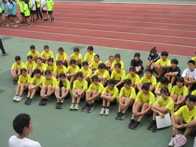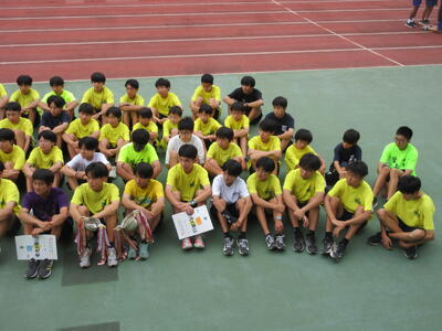▼なお、昨日は、岐阜県の岐阜メモリアルセンター長良川競技場で行われた「第109回日本陸上競技選手権大会」のU16男子4×100m Rに、古平さん(3年)・飯田さん(3年)・高松さん(3年)・木村亮介さん(3年)・織田さん(3年)・岩上さん(2年)のメンバーで出場。葛北大会の翌日で疲れもあり、しかも長距離の移動を経た岐阜の地において、見事に43秒38の記録を残しました(→詳細はこちら)