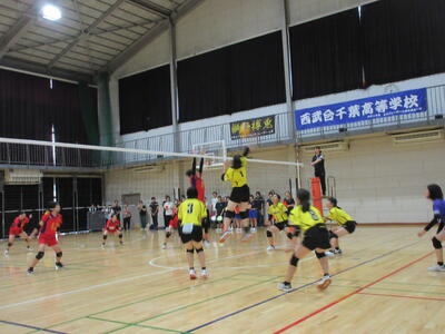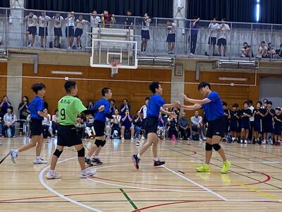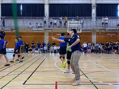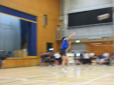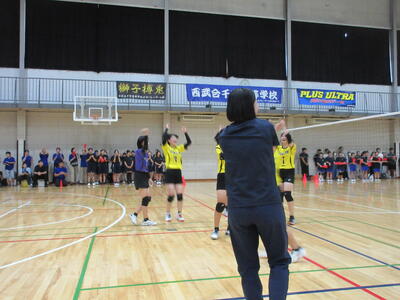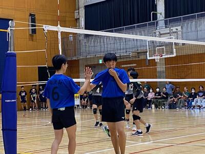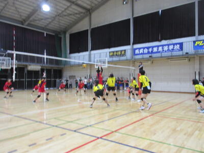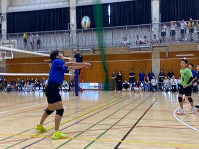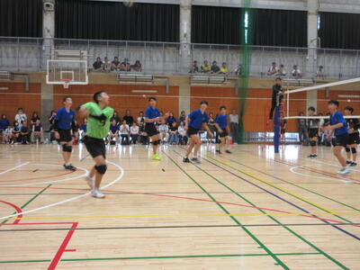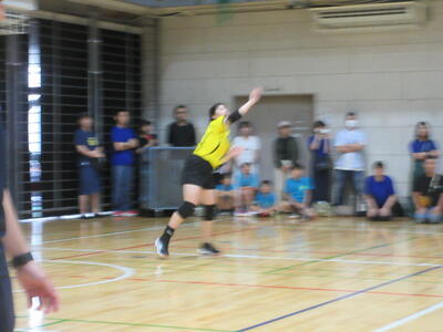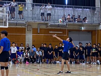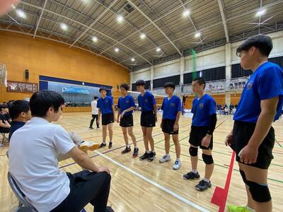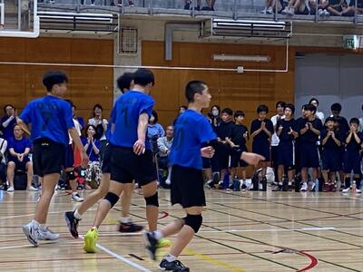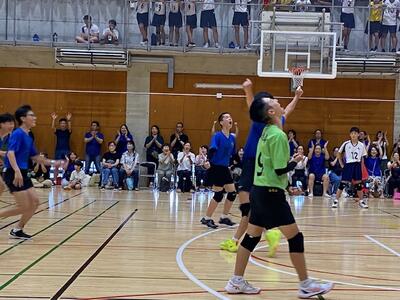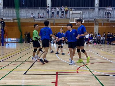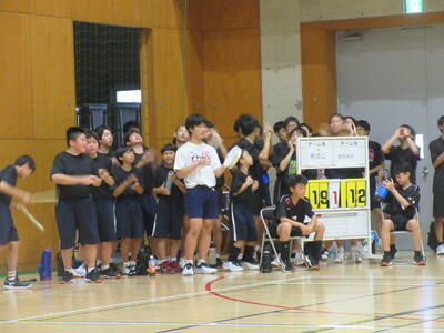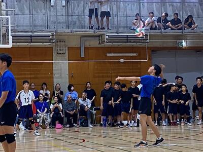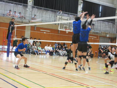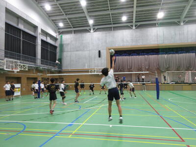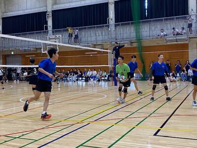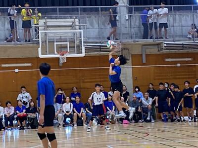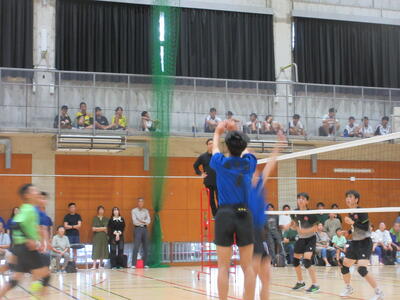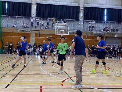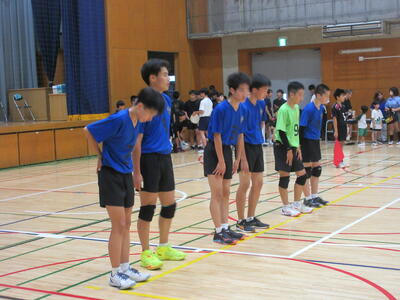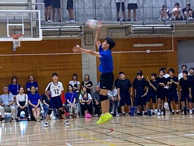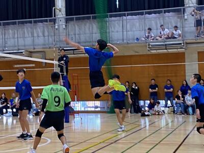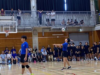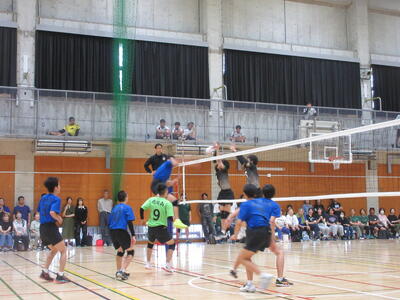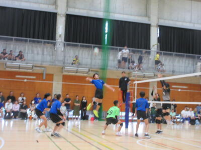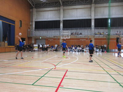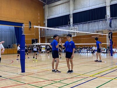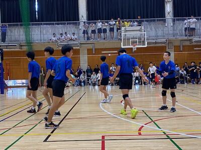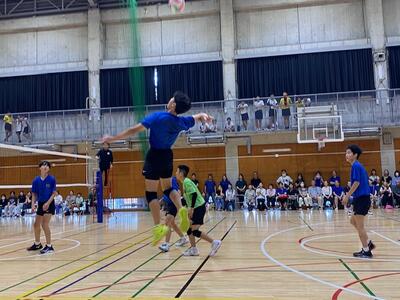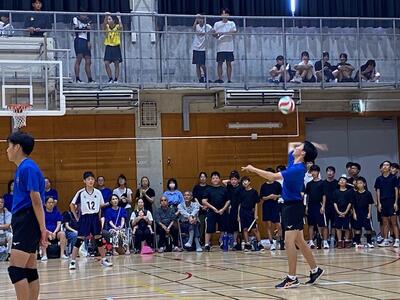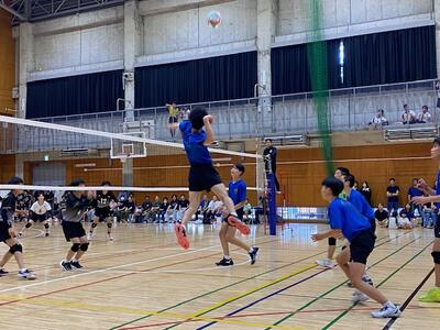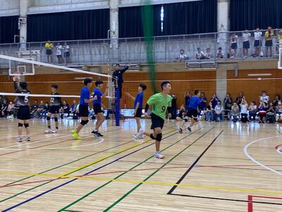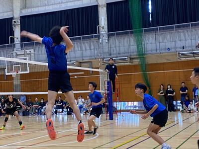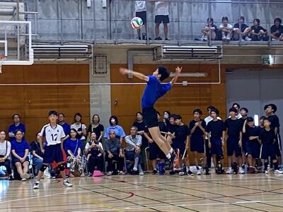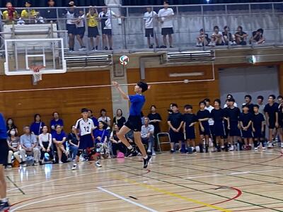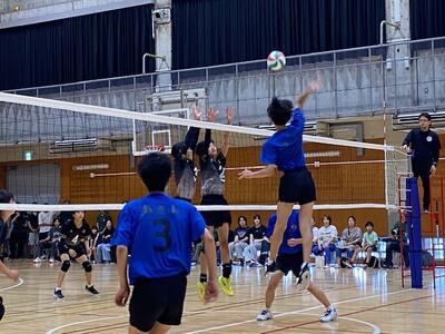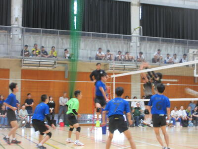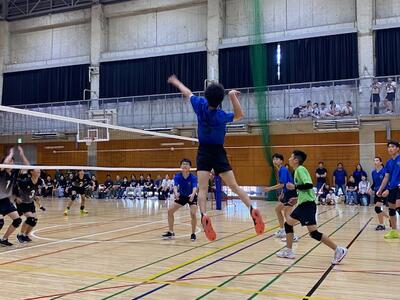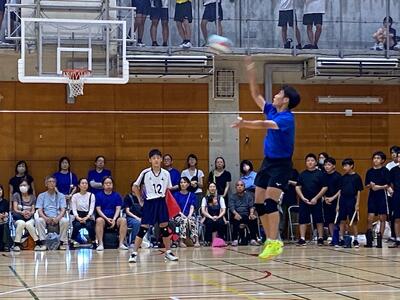 本校男子バレー部は、1日目の1試合目、川間中戦に2対0(25-14/25-17)、2試合目の八木中戦でも2対0(25-18/25-11)の2連勝で順調に勝ち進みます。