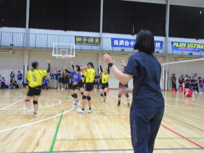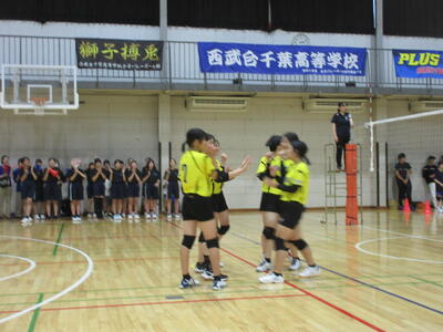 そして優勝をかけた2試合目。ともに全勝同士、強豪の野田市立南部中との対戦となりました。第1セットは相手の激しい追い上げの前に苦しむ場面もありましたが、最終的には25対22で振り切ります。迎えた第2セットは中盤まで一進一退の攻防が続き、我慢の展開。しかし中盤以降、徐々にリードを広げ、最終的には25対18のセットカウント2対0で見事に勝利。4試合通して1セットも落とすことなく、全勝での優勝を飾り、今月27日と28日に行われる県大会への出場を決めました!!