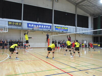 昨日と本日、本校体育館にて行われた男子バレーの葛北大会。葛北地区5校による総当たりのリーグ戦が繰り広げられました。