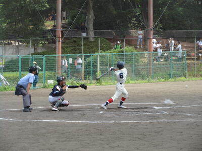 ▼試合は、序盤から相手に主導権を握られる苦しい展開。残念ながら5回表終了時点で1対8のコールドで、野球部の葛北大会での戦いは終了しました。それでも3年生を中心に最後まで諦めずに戦い抜いた子ども達。