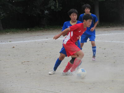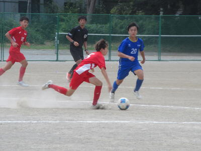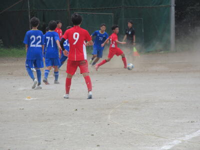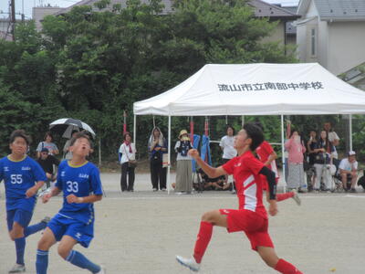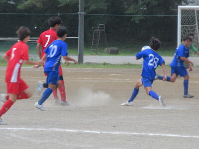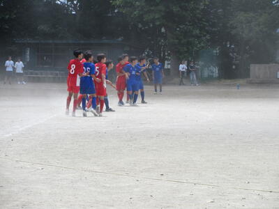 前半早々に荒井選手、芝選手の見事なゴールで順調に2点を先制した本校サッカー部。後半に入って流山東部中の厳しい反撃に遭います。その中から1点を返され苦しい展開。何とか追加点を挙げようと最後まで攻撃の手を緩めない本校サッカー部ですが、厳しいディフェンスが持ち味の東部中も失点を許しません。試合はそのまま終了のホイッスル。本校サッカー部が2対1で勝利を掴みました!!