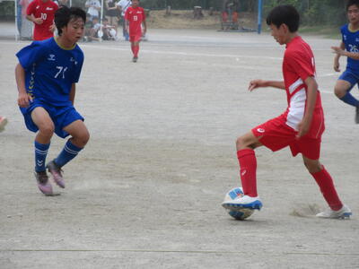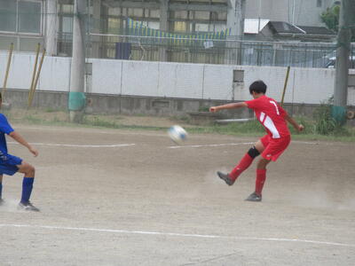 本日、流山市立南部中学校グラウンドにて行われた、サッカーの葛北大会Aブロック準決勝。先週の川間中との初戦を5対0で勝ち上がってきた本校サッカー部は、流山市立東部中学校と対戦しました。5月の市内大会では雨中の決戦で素晴らしい戦いを演じた両チーム(→詳細はこちら)。それ以来の再戦となりましたが、今日も激しい攻防が続くナイスゲームとなりました。