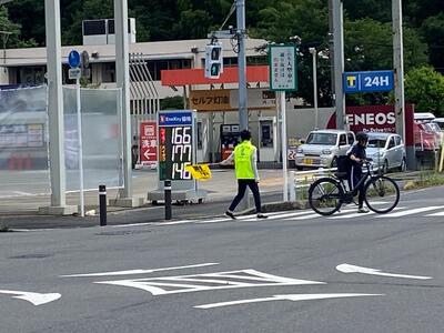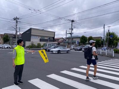 さて、そんな暑さの中、今日も、朝から交差点で南流中生を見守ってくださる方々がいらっしゃいました!