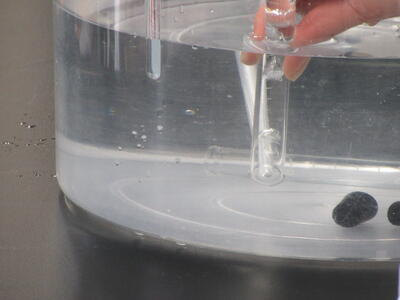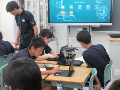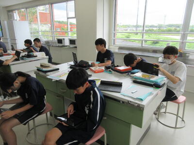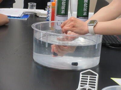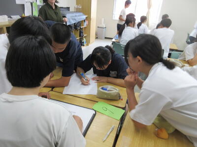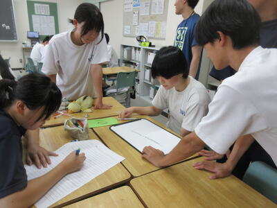 ▼3年生の理科の授業。グループ内で実験を行いながら、学習が進められています。