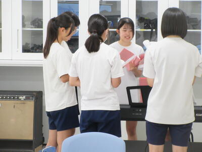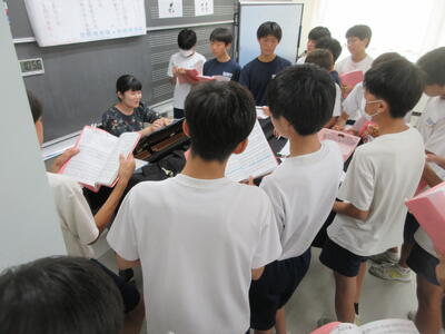 ▼第1音楽室での3年生の音楽の授業。3年生達の元気の良い合唱練習の声が廊下からも聞こえてきます。