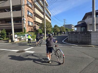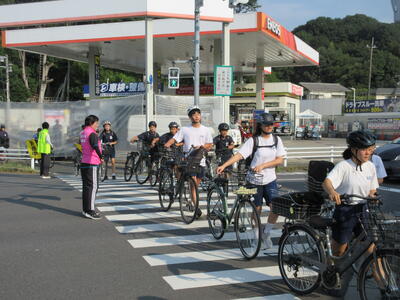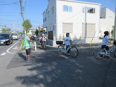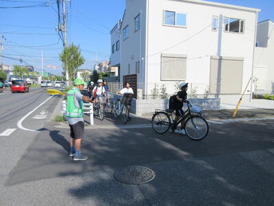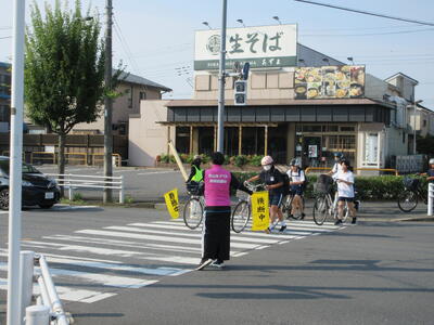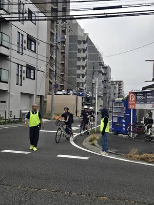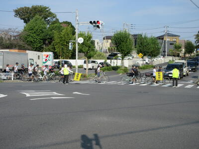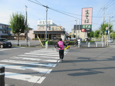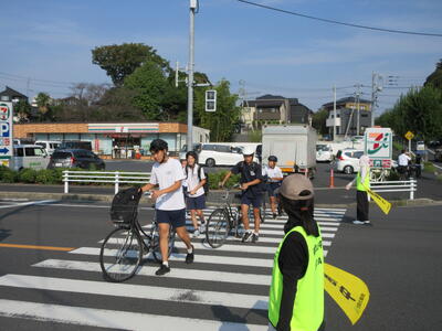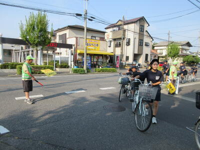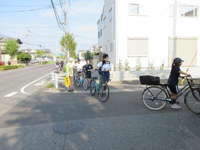 ▼思井福祉会館前の交差点では、田中前教育長、PTAの目黑会長、同じくPTAの山口さん、そしてボランティアの坂本さんが、がっちりと自転車通学者の安全を守ってくださっています。第1回学校運営協議会での話し合いを経て、子ども達の見守りがこんなにも手厚く。そして、他の多くの箇所でもこのような見守り活動が積極的に行われています・・・。感謝の気持ちで一杯になります