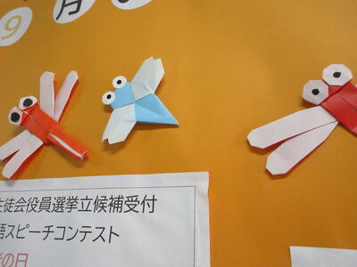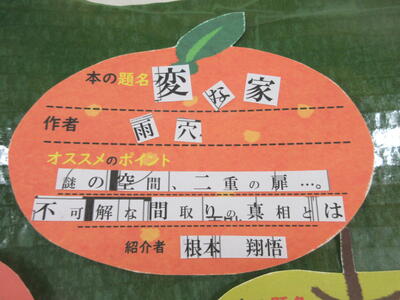 ▼サポート指導員の馬場先生が作ってくださった「にゃんりゅう~読書バージョン~」。読書の秋ですね。にゃんりゅうもそうですが、持っている本も何とも可愛いですね。