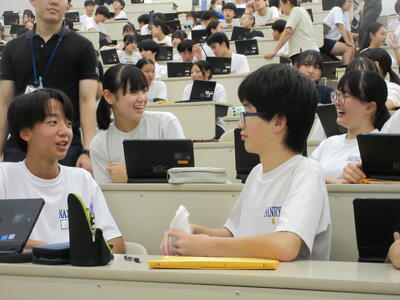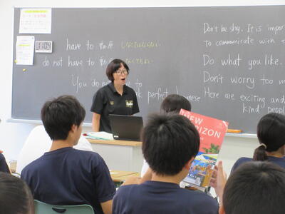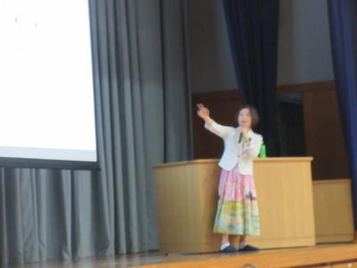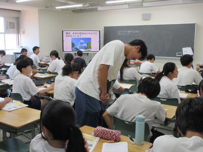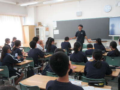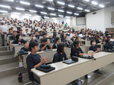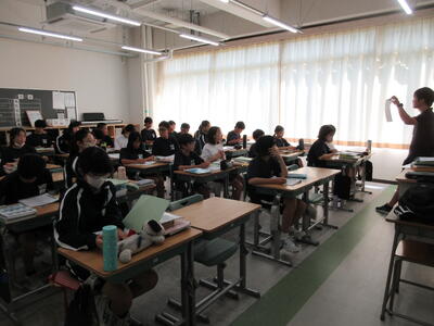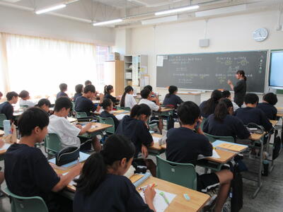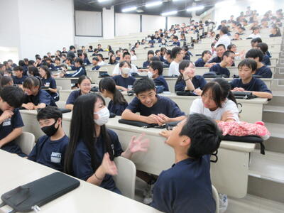 9月16日(火)の南流中は「プレゼン研修日」!! 各学年2時間ずつ、特別講師をお招きして、ホールで学年一斉・特別授業を行いました!特別講師の先生方は、アルバ・エデュの蝦 真理子先生、三浦 嘉子先生です!!