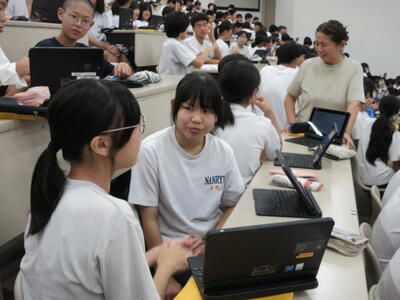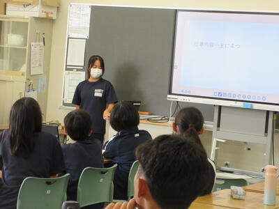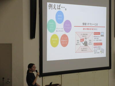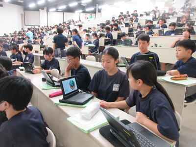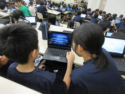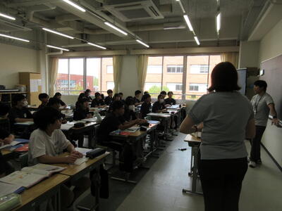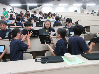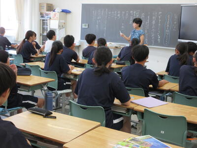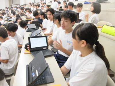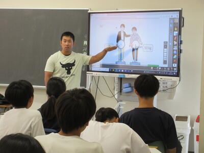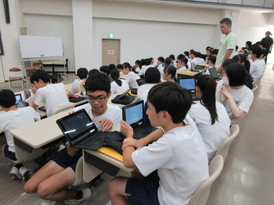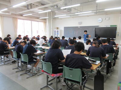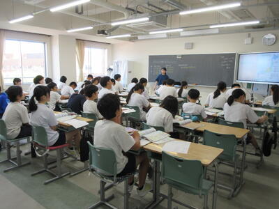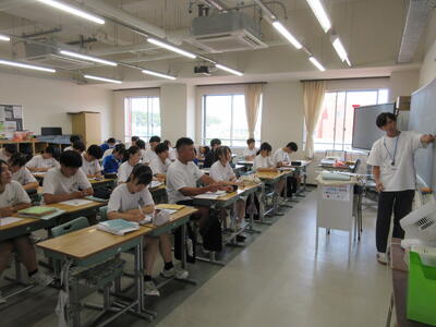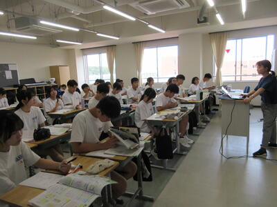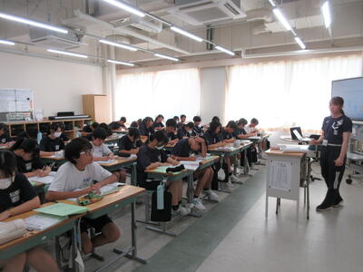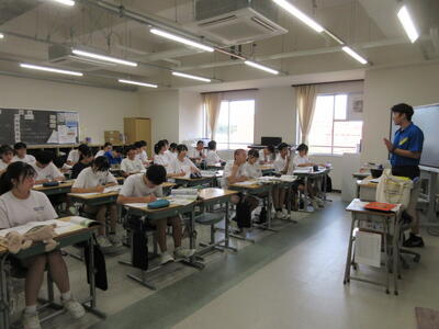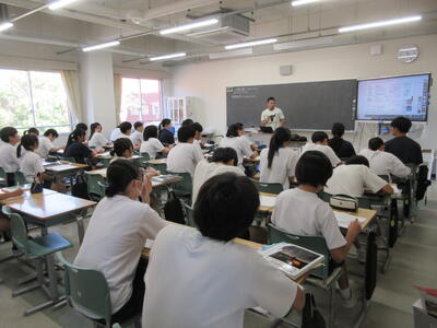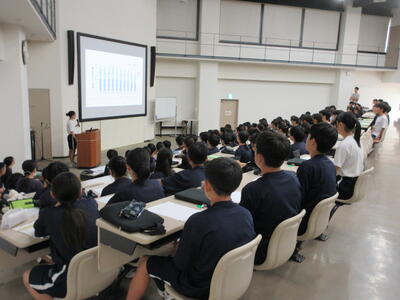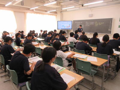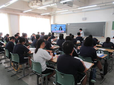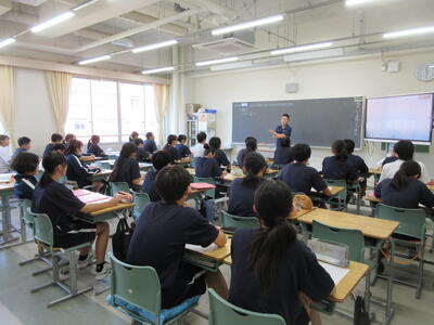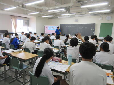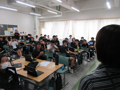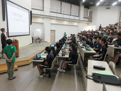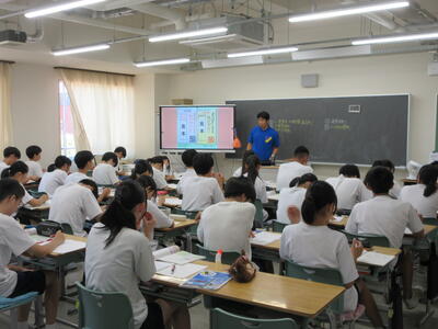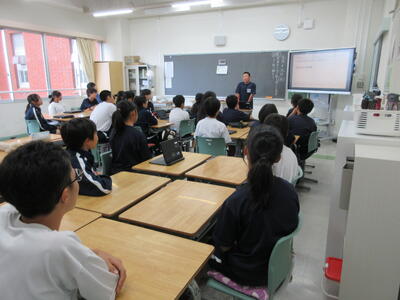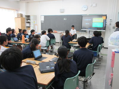 ▼3・4時間目に行われた2年生対象の「プレゼン授業」。