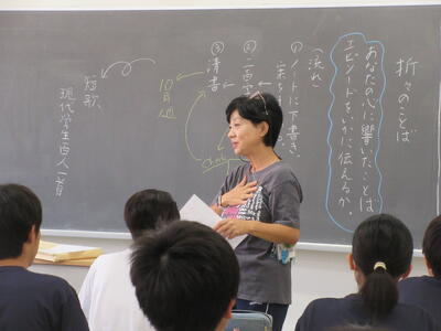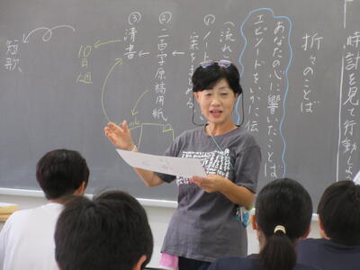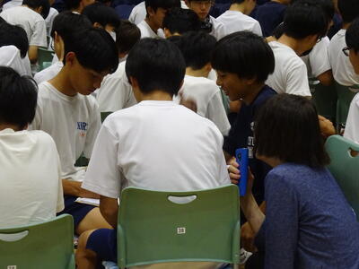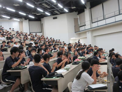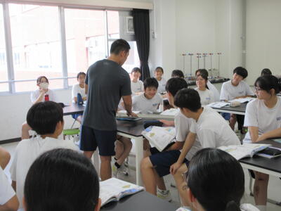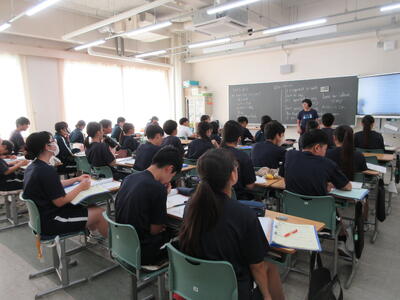 今日の特別授業は、「プレゼン授業・上級編」と題して行われました!生徒一人ひとりが夏休み中に準備してきたプレゼンを仲間と発表し合い、それを踏まえて蝦先生、三浦先生がさらなるブラッシュアップのために、実践的なアドバイスをしてくださいまいた!