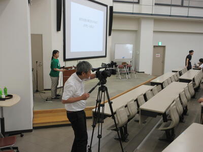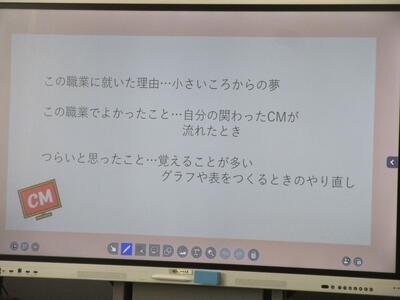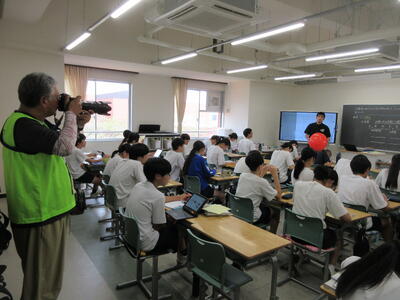▼5・6時間目に行われた3年生対象の「プレゼン授業」。ちょうどこの時間、ケーブルテレビ「J:COM」の澤田征利さんが取材にいらっしゃいました。