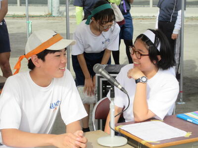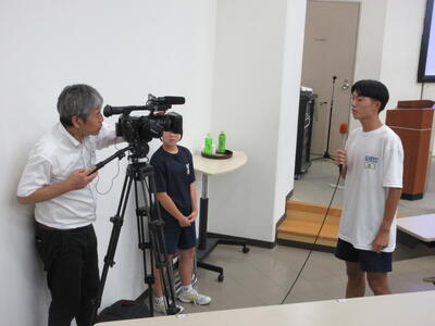 授業終了後には、3年生代表の趙さんと岡田さんがJ:COMのインタビューに応えてくれました!!今回の授業の様子やインタビューは、9月27日(土)~10月3日(金)の期間に、J:COMの「ジモトトピックス」という番組で放送されます!期間中、平日は7時、11時、20時30分に、土日は11時、17時、20時30分に再放送されます!また、地域情報アプリ「ど・ろーかる」でも配信され、アプリでなら9月27日以降はいつでも見られます!ぜひ、ご覧ください!!