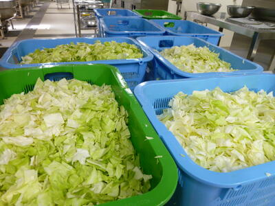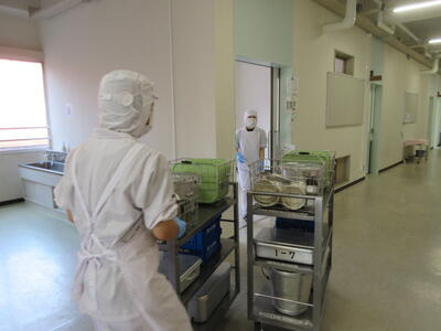 ▼4時間目が始まって少し経つと、調理員さん達が重いワゴンを押しながら、一生懸命に広い校舎内を行き来します。調理作業が終わったのもつかの間、調理員さん達から子ども達への思いのこもった給食が、毎日丁寧にセッティングされていきます。本当にありがとうございます!!