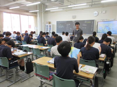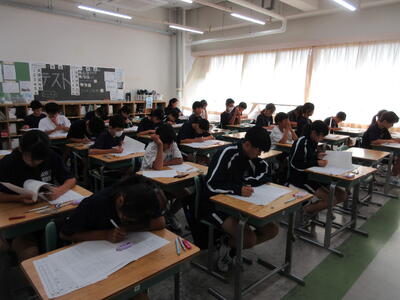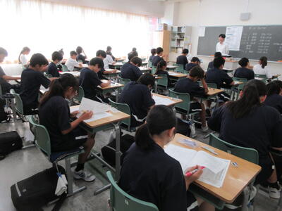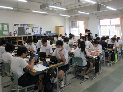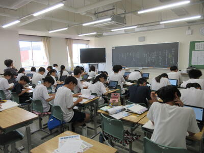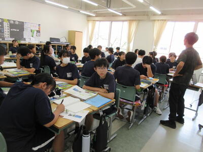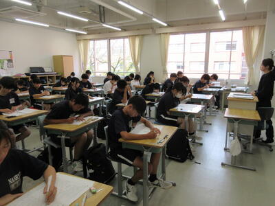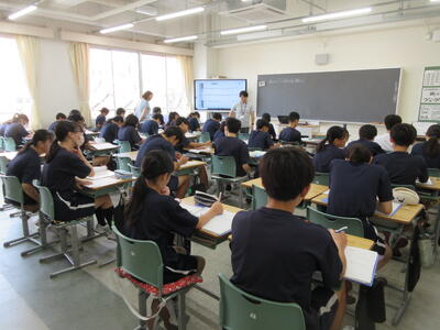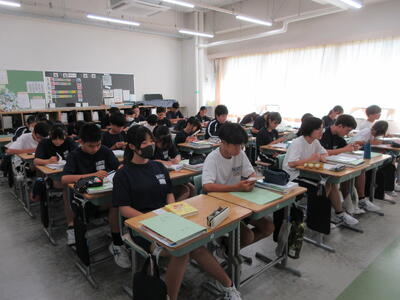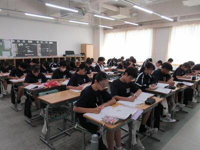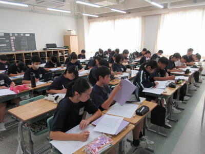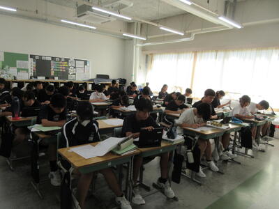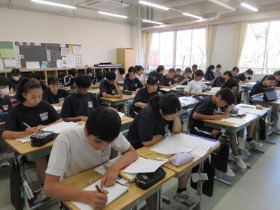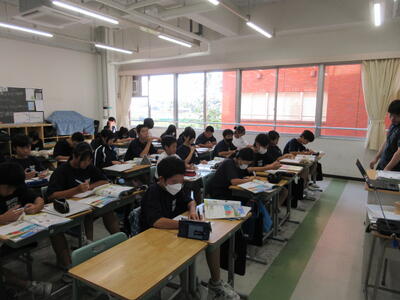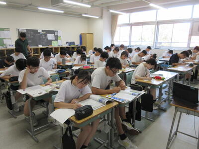 ▼3時間目から4時間目にかけての授業の様子。真剣な表情の生徒があふれています。