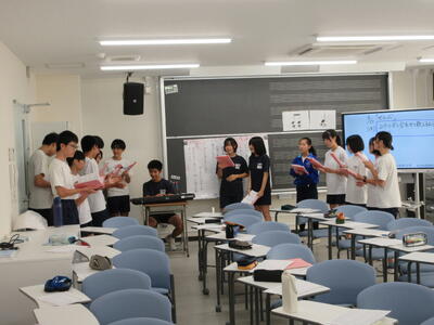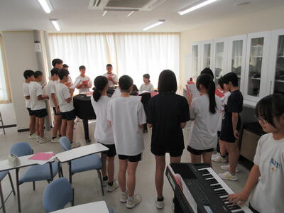 ▼3年生の素敵な合唱が響き渡るD棟5階の第1音楽室。
