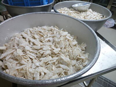 今日は「根菜酢鶏」について紹介します。今日は中華料理として人気のある「酢豚」を、豚肉ではなく、鶏肉を使った「酢鶏」として、アレンジしました。元々の料理である酢豚は、人気のある中華料理の一つですが、「酢豚」という料理名は日本でつけられた呼び名ですこの料理の元となったものは、大きく分けて2つあると言われています。ひとつは、クゥラオローという名前の広東(カントン)料理で、中国南東部の広東省という地域が発祥です。もうひとつは、タンツゥロウカイという北京(ペキン)料理です。このように、酢豚は広い中国の南北それぞれに起源を持つ料理とされています。今日はれんこんも鶏肉と同様に油で揚げて、さっくりとした食感にしています