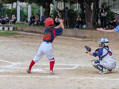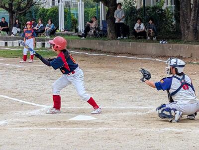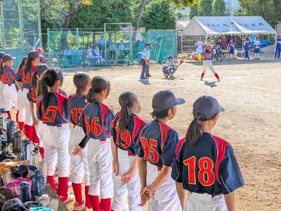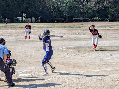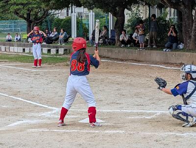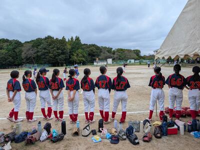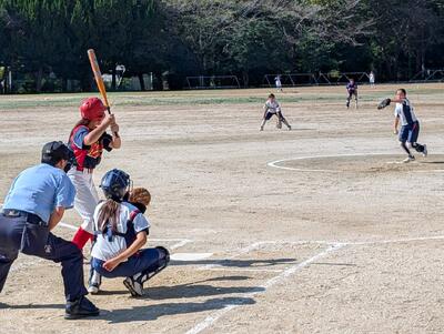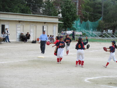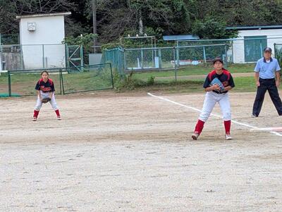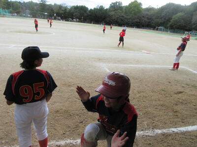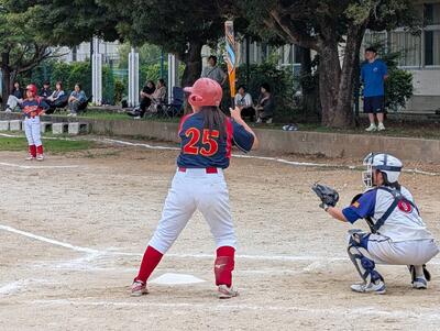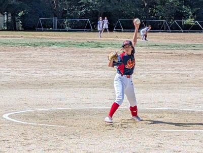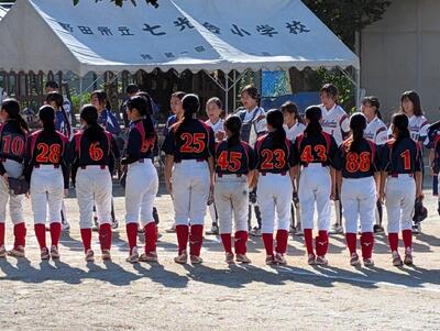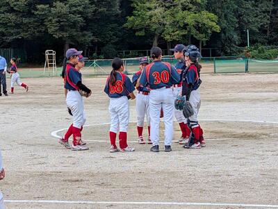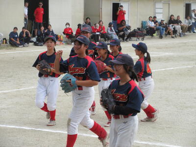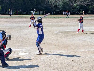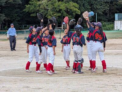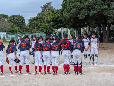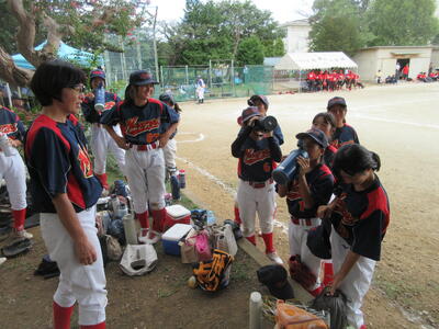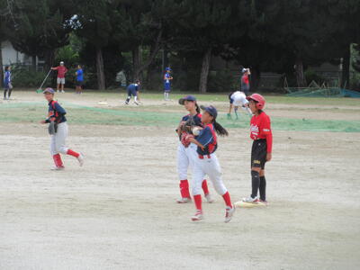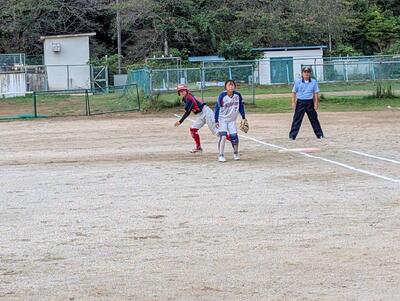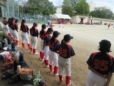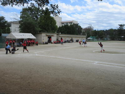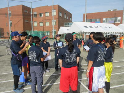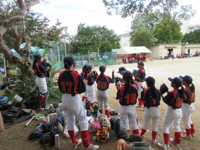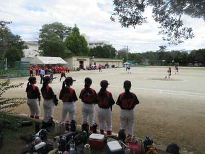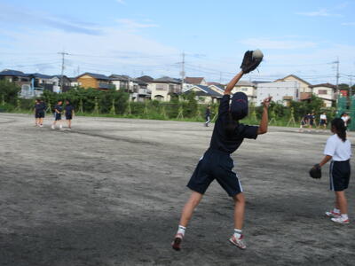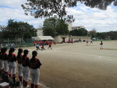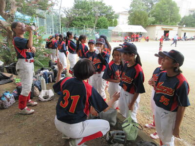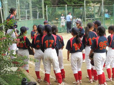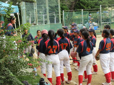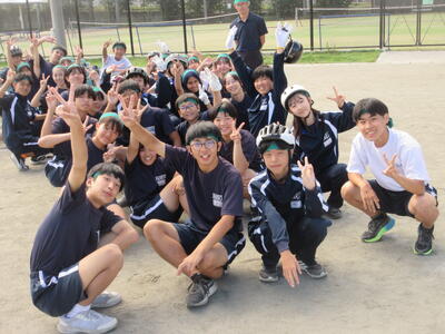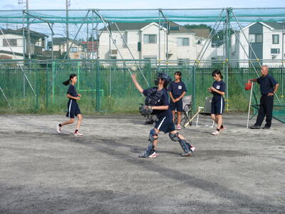 ▼ソフトボール部。明日は1試合、明後日は2試合。みんな、頑張れ!!