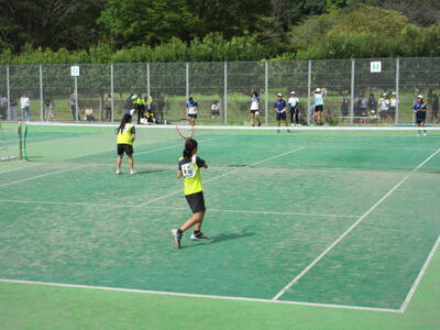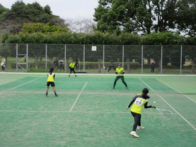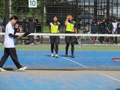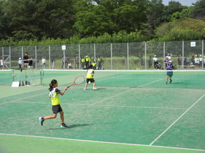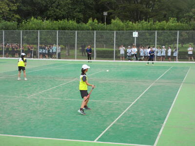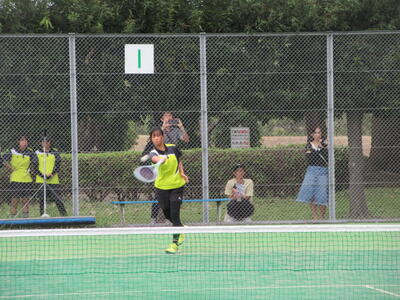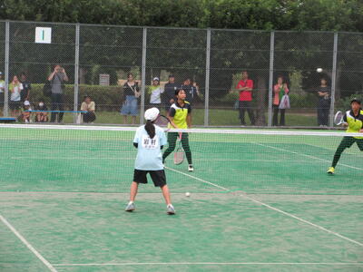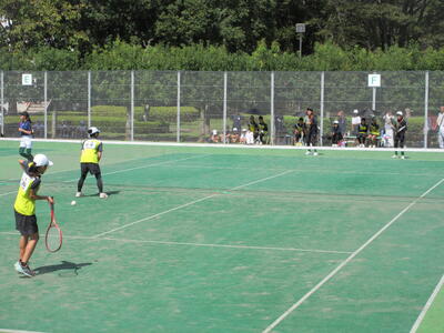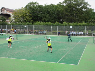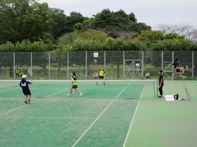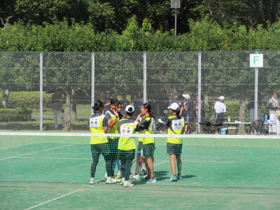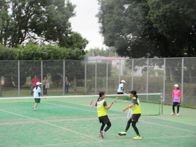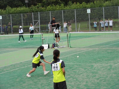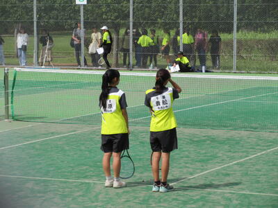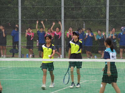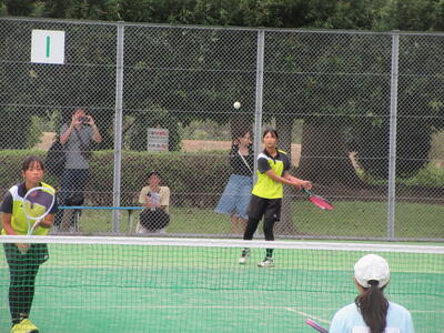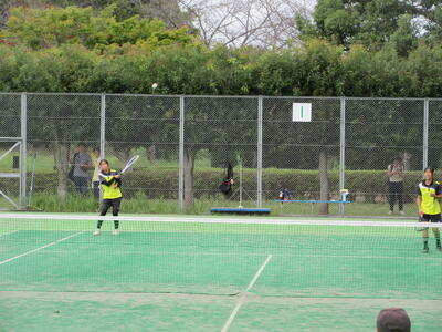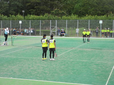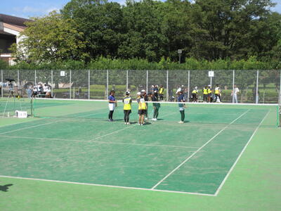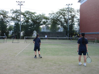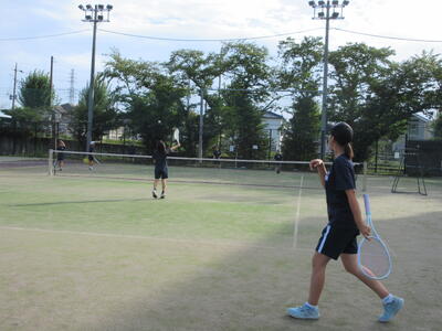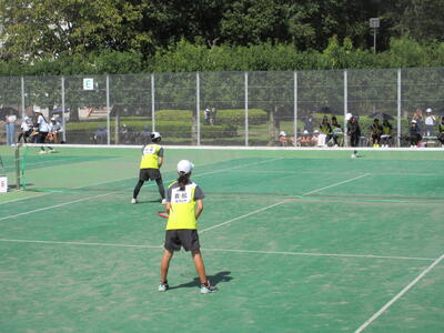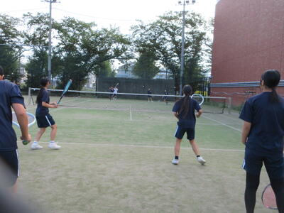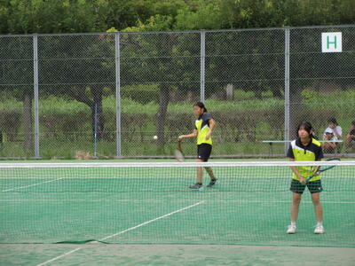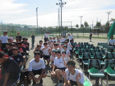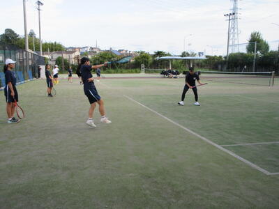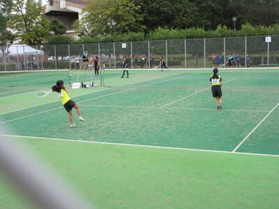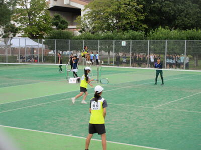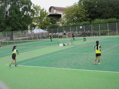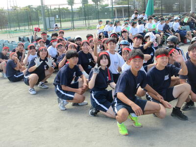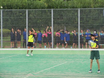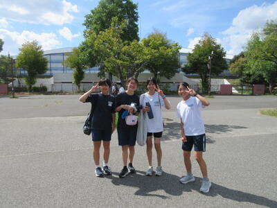 ▼ソフトテニス部。明日は個人戦、明後日は団体戦。みんな、頑張れ!!