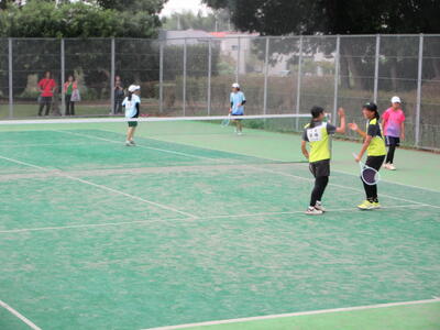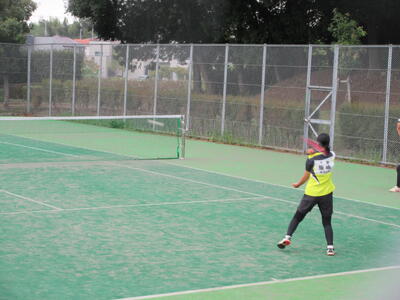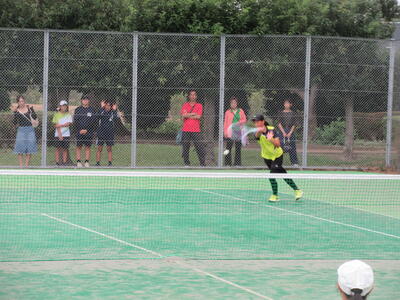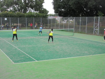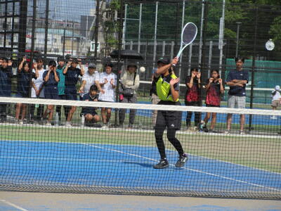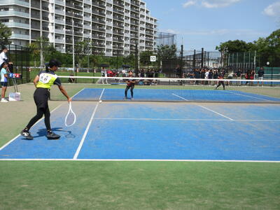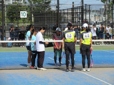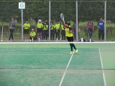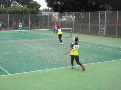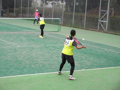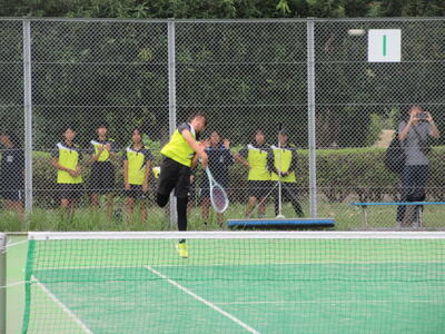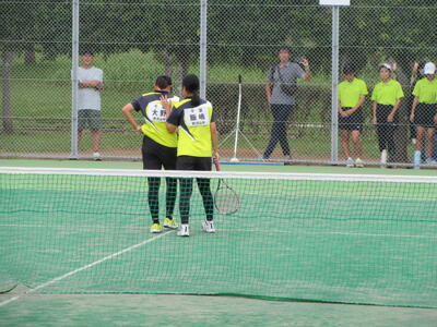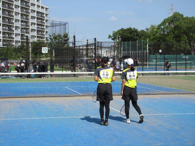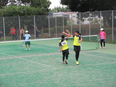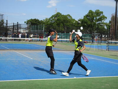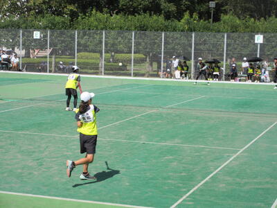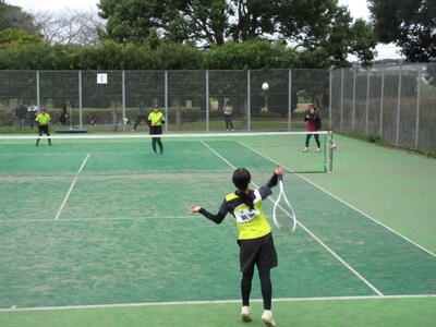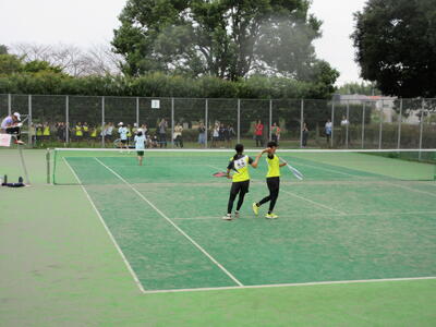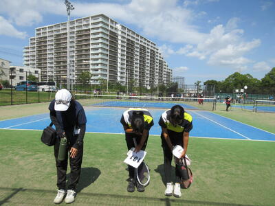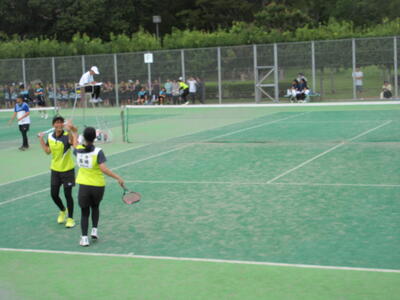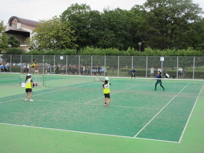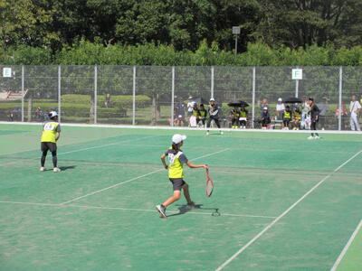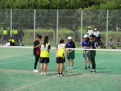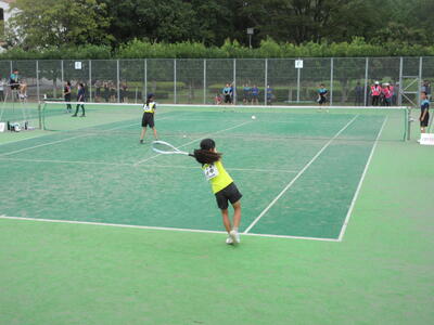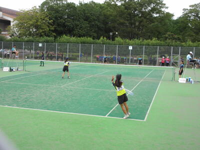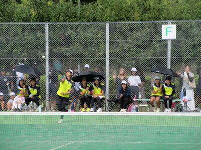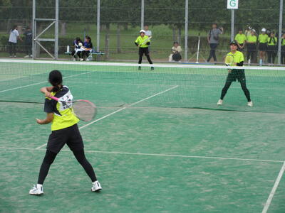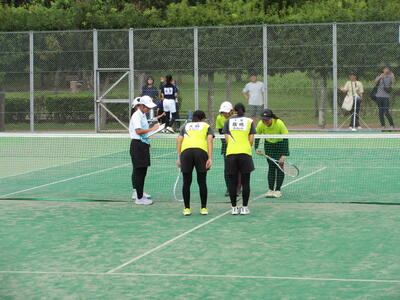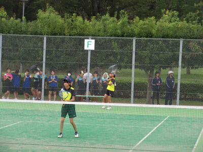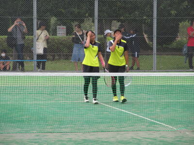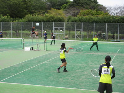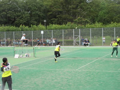 ▼ソフトテニス部。明日は個人戦、明後日は団体戦。みんな、頑張れ!!