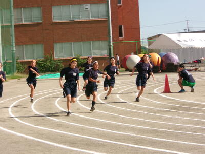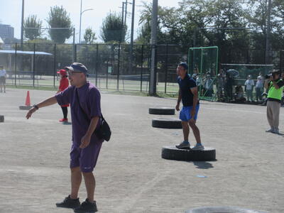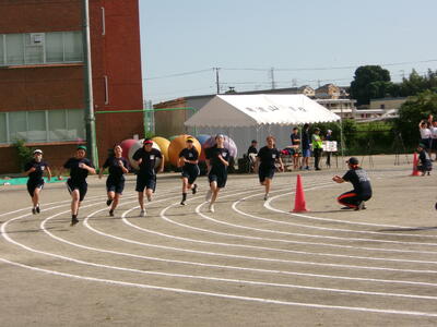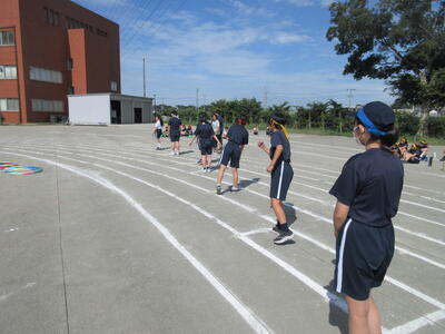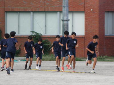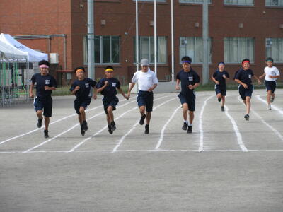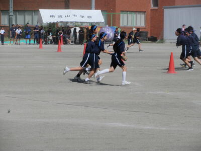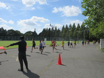 ▼第1グラウンドでは、レク走や徒競走の確認、3年生の学年種目の練習が行われていました。