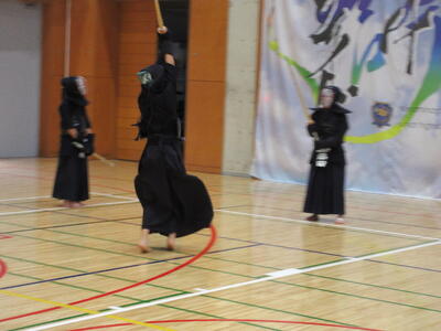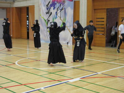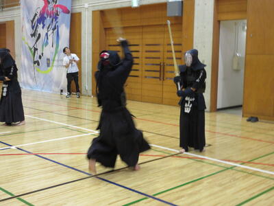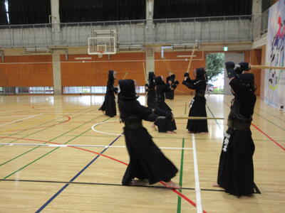 ▼剣道部。少人数ながら気迫あふれる稽古が行われています。みんな、頑張れ!!