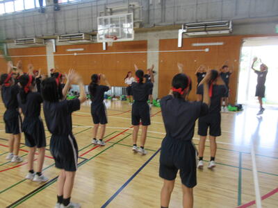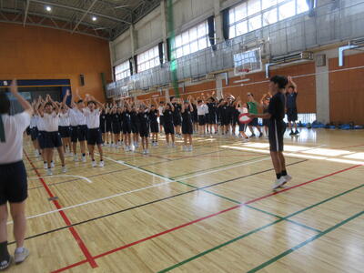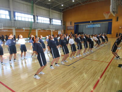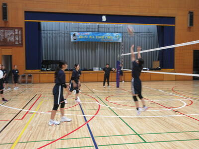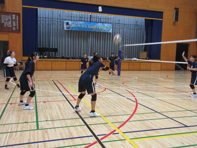 ▼女子バレー部。実によく声をかけています。これは、必ず強くなります。みんな、頑張れ!!