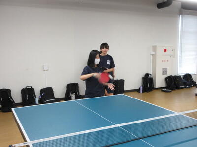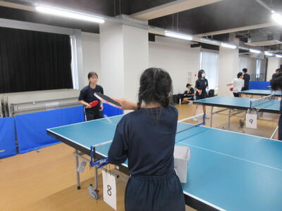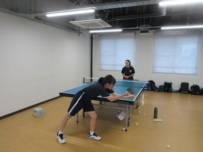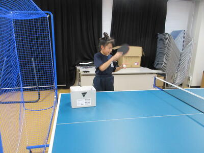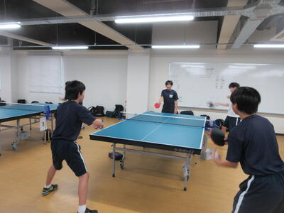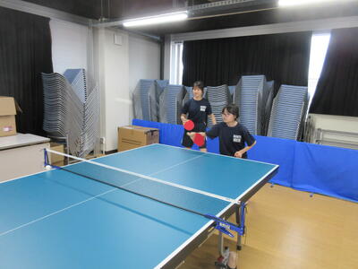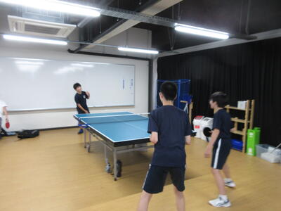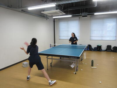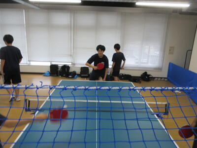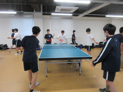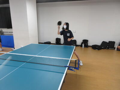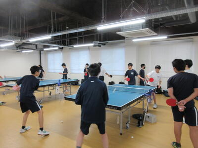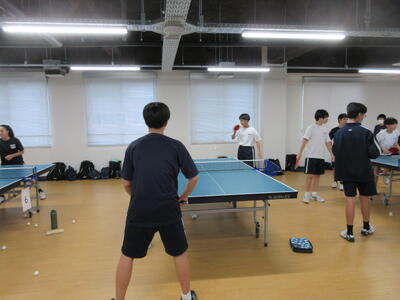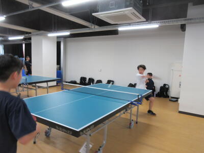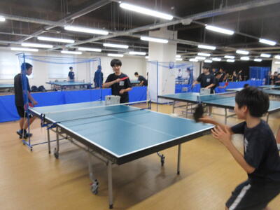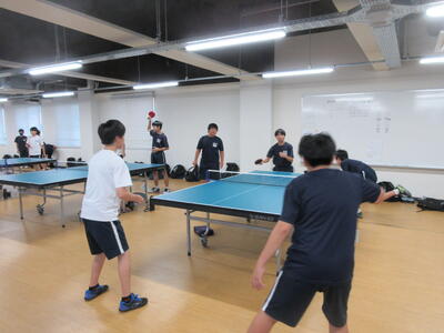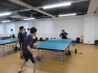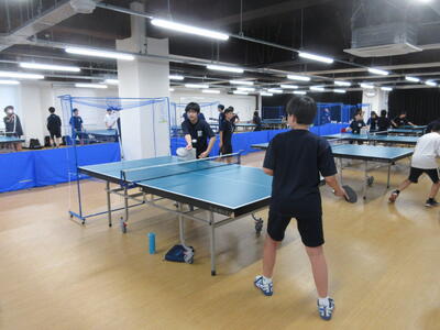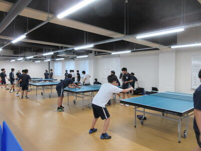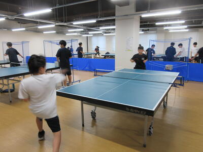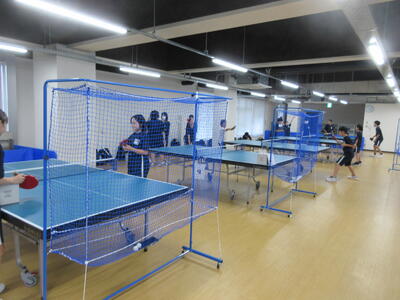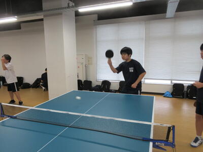 ▼卓球部。50人を超えるという大所帯。全ての卓球台を使って、激しく、でも楽しそうに練習を行っています。みんな、頑張れ!!