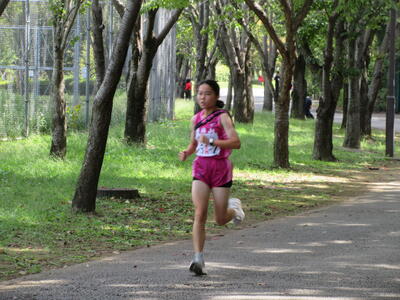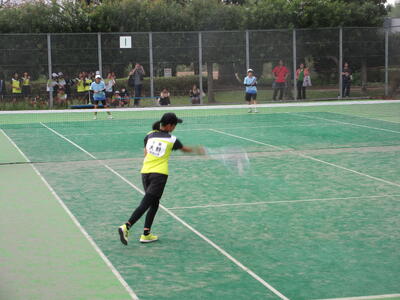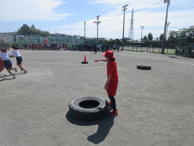 個人の2種目目は「レク走」。じゃんけん、輪くぐり、そして最後は、長さが異なるスズランテープを引き切ってから、ゴールへ一直線。