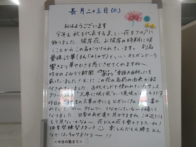 今日から10月です。朝晩は涼しくなってきましたが、日中はまだ暑さが残ります。明日の体育祭に向けて、体調に注意しましょう