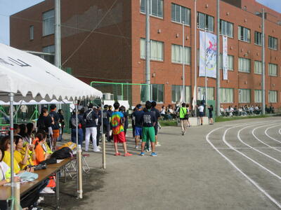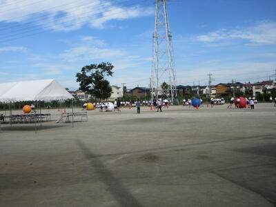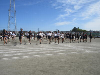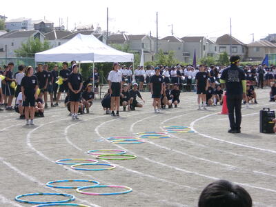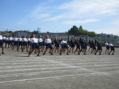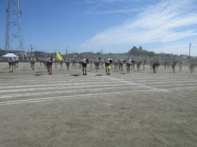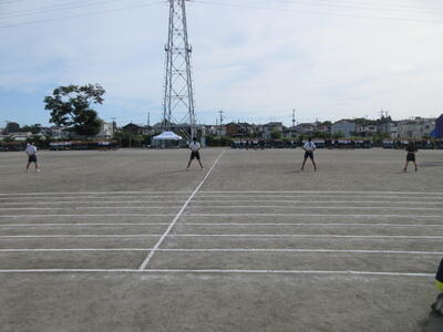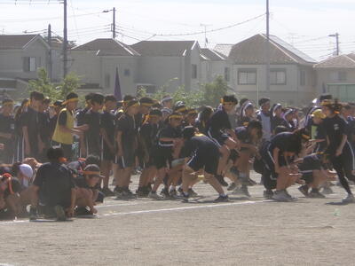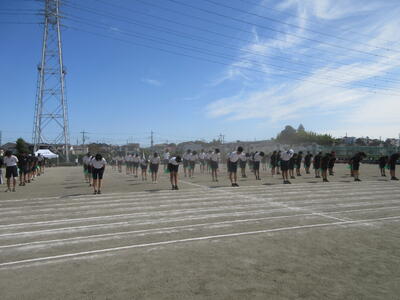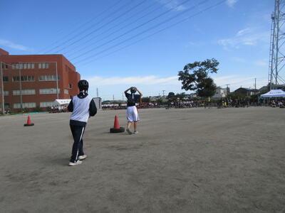 ▼第2グラウンドでも1年生の半分のクラスが学年種目の練習を行っていました。