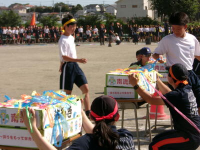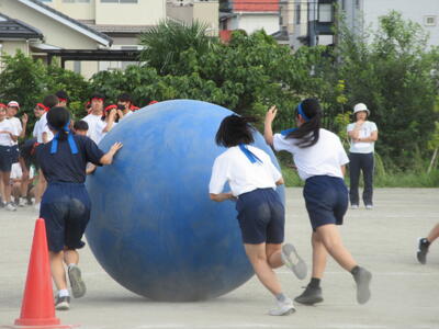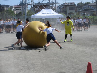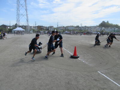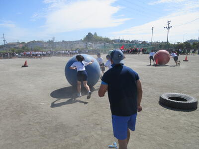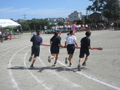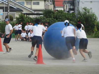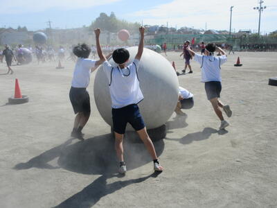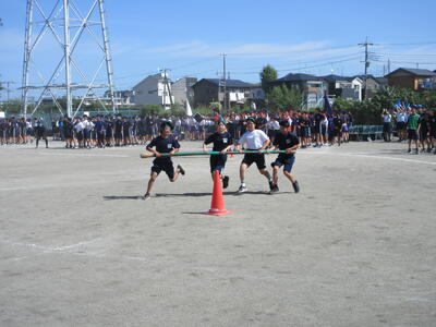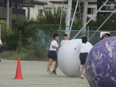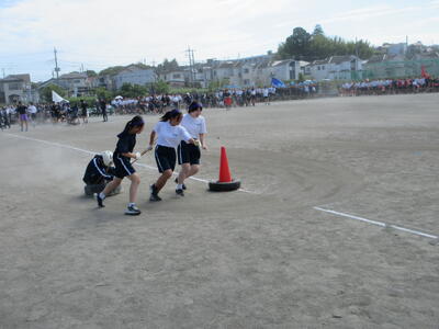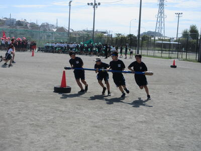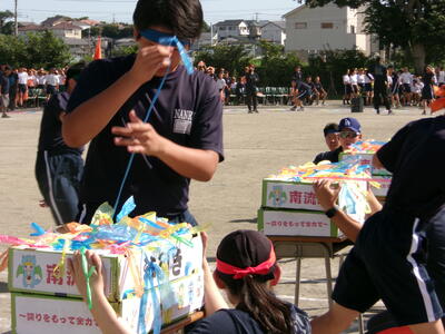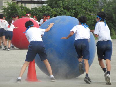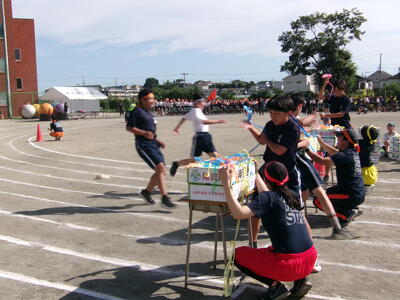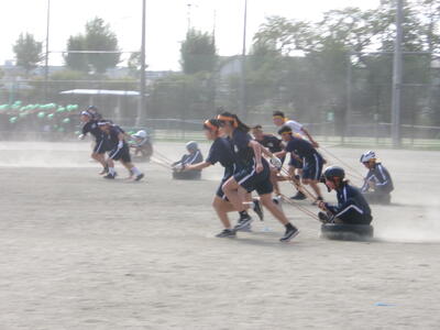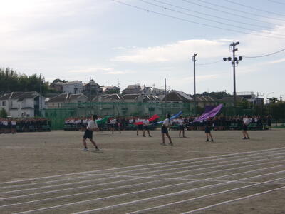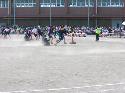 2学期となり大きく成長した1年生達は、チームワーク良く次々に進んでいきます。大興奮のの激戦を制したのは果たしてどの南流台風でしょうか?